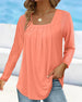 Plisowana bluzka z długim rękawem i kwadratowym dekoltem