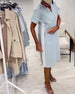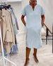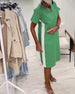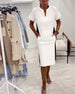 SPECYFIKACJE: Styl: Nieformalny Materiał: Bawełna z domieszką Rodzaj Sukienki: Prosty Długość Sukienki: Nad kolanem Dekolt: Dekolt Kopertowy Wzór: Jednolity Kolor Rodzaj rękawa: Rękaw standardowy Długość rękawa: Krótki rękaw Detale: Kieszeń,Zamek błyskawiczny Typ sylwetki: Regularny Pora roku: Wiosna Okazja: Na co dzień Paczka zawiera: 1 x Suk...