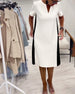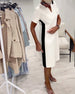 Sukienka Z Krótkim Rękawem Kontrastowy Kolor Prosta